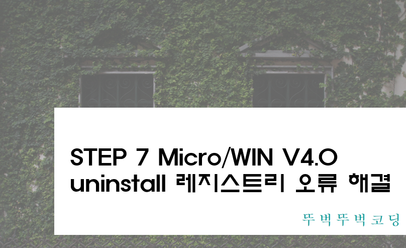 STEP 7 Micro/WIN V4.0 uninstall 레지스트리 오류 해결 발생하는 레지스트리 오류 오류 해결 발생하는 레지스트리 오류 STEP 7 MICRO/WIN V4.0은 SIEMENS사의 S7-200 PLC 프로그래밍에 필요한 툴입니다. 오늘은 해당 프로그램을 언인스톨하는 경우, 오류 팝업이 나오면서 정상적으로 프로그램이 삭제되지 않는 에러를 해결해보도록 하겠습니다. 1. 프로그램 삭제를 진행하는 경우 발생하는 팝업창 2. 비정상적인 삭제 완료 이후 발생하는 오류1 3. 비정상적인 삭제 완료 이후 발생하는 오류2 4. 비정상적인 삭제 완료 이후 발생하는 오류3 5. 비정상적인 삭제 완료 이후 발생하는 오류4 6. 비정상적인 삭제 완료 이후 발생하는 오류5 오류 해결 1. 윈도우 + R 키를 통..