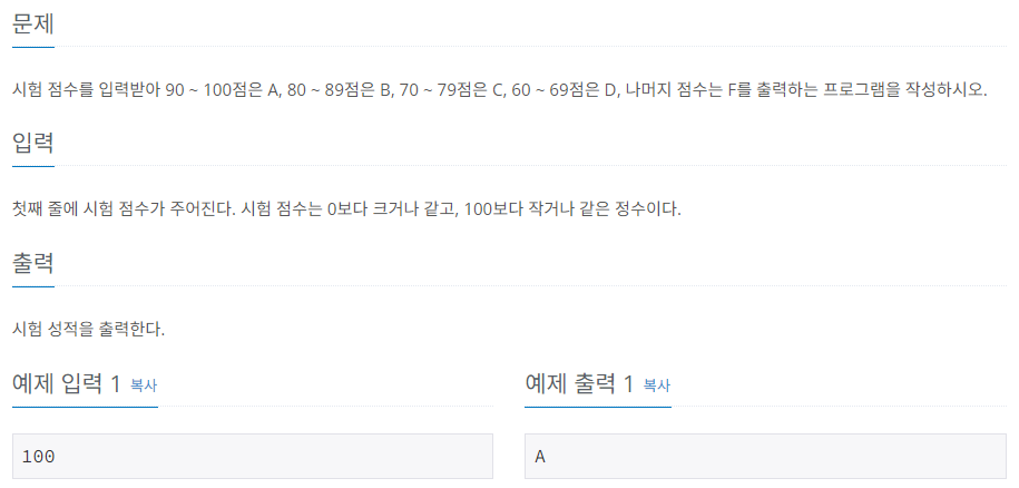단계별 문제풀이 2단계단계별 문제풀이 2단계는 조건문에 해당하는 단계입니다, 문제는 총 7문제 입니다. 1. 두 수 비교하기 [백준 C++] 단계별 문제풀이 2단계 두 수 비교하기 문제 풀이 결과 문제 풀이 #include using namespace std; int main() { int a, b = 0; cin >> a >> b; if (a > b) { couttiptapcoding.tistory.com 2. 시험 성적 [백준 C++] 단계별 문제풀이 2단계 시험 성적 문제 풀이 결과 문제 풀이 #include using namespace std; int main() { int nScore = 0; while(1) { cin >> nSco..