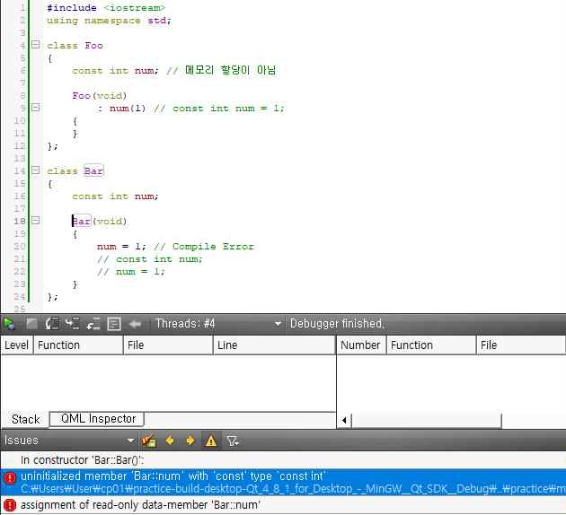 friend, static, const const 클래스와 함수 friend 선언 static const 객체의 const 선언 : 객체 안에 존재하는 데이터의 변경을 허용하지 않겠다는 의미 -> const로 선언된 객체를 대상으로 const 선언되지 않은 멤버 함수를 호출하면 컴파일 에러 발생 const 함수의 오버로딩 : const 선언의 유무도 오버로딩의 조건으로 사용 가능 simple(); simple() const; -> 두 함수는 오버로딩 관계에 있음 -> const 객체를 인자로 함수를 호출하면 simple() const가, 일반 객체를 대상으로 호출하면 simple() 클래스와 함수 friend 선언 friend 선언이 된 대상은 클래스의 private 멤버에 직접 접근이 가능 friend..